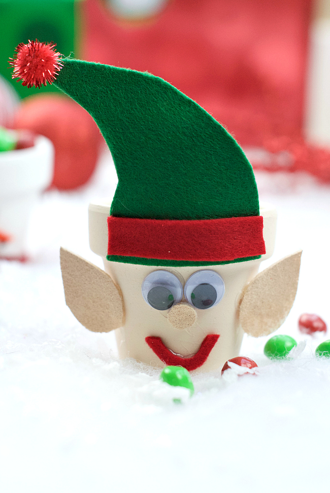 Un par de consejos para ti. Pinté fieltro para obtener el color adecuado para las orejas de los elfos. Puedes usar bolas de algodón o piel para la barba de Santa si quieres.