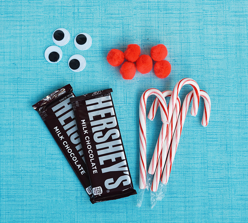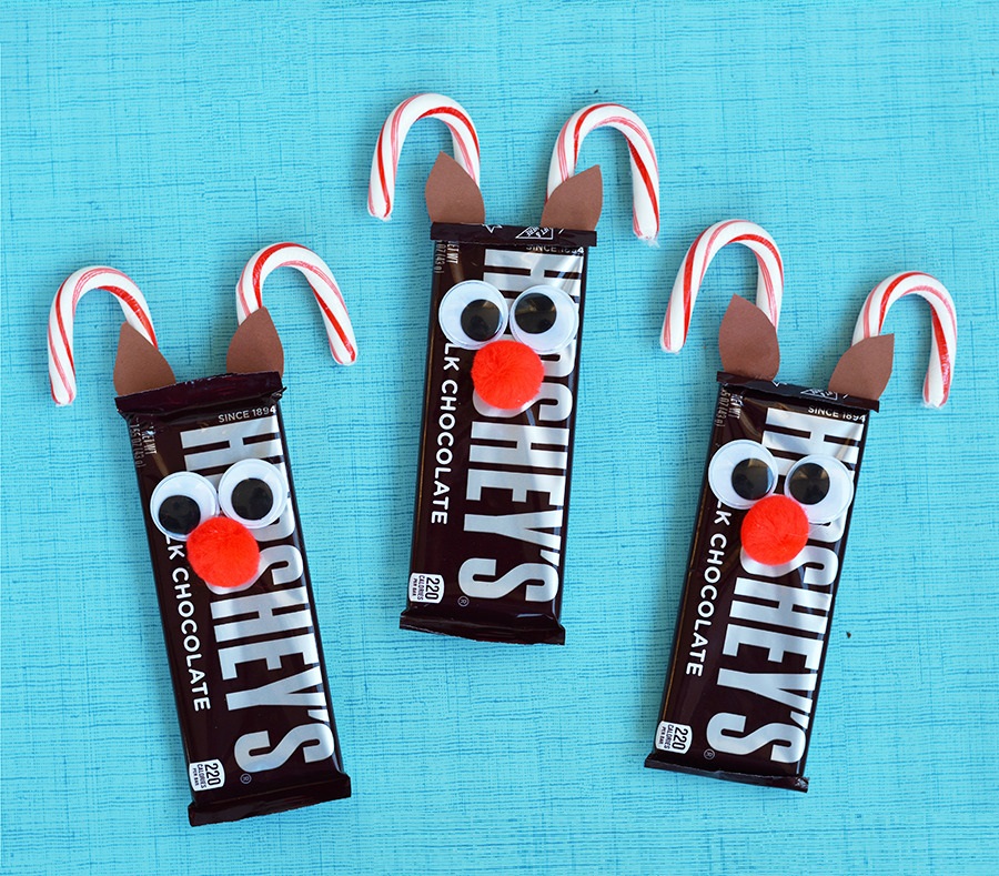 ¡Luego toma tus ojos saltones y pompones rojos y pégalos al frente de tu barra de chocolate para completar tu regalo!